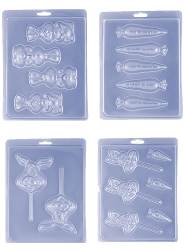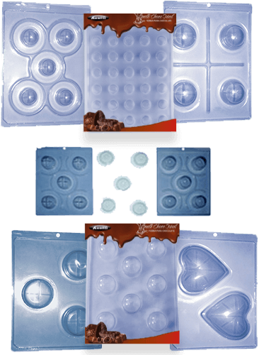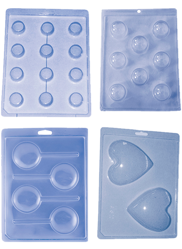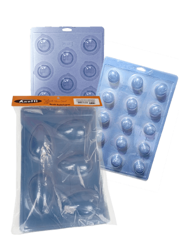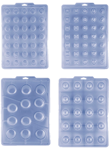 Kit c/ 3 partes: 1 forma rígida com marca / Película flexível no formato da cavidade / 1 forma rígida lisa.